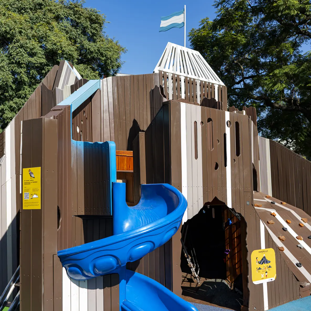En este mangrullo con forma de montaña nos aseguramos de que todos los chicos puedan disfrutar. Experiencias de escalada únicas con recorridos aptos y accesibles para niños con silla de ruedas. Además, cuenta con paneles rupestres integradores en su interior donde podrán divertirse y aprender al mismo tiempo.