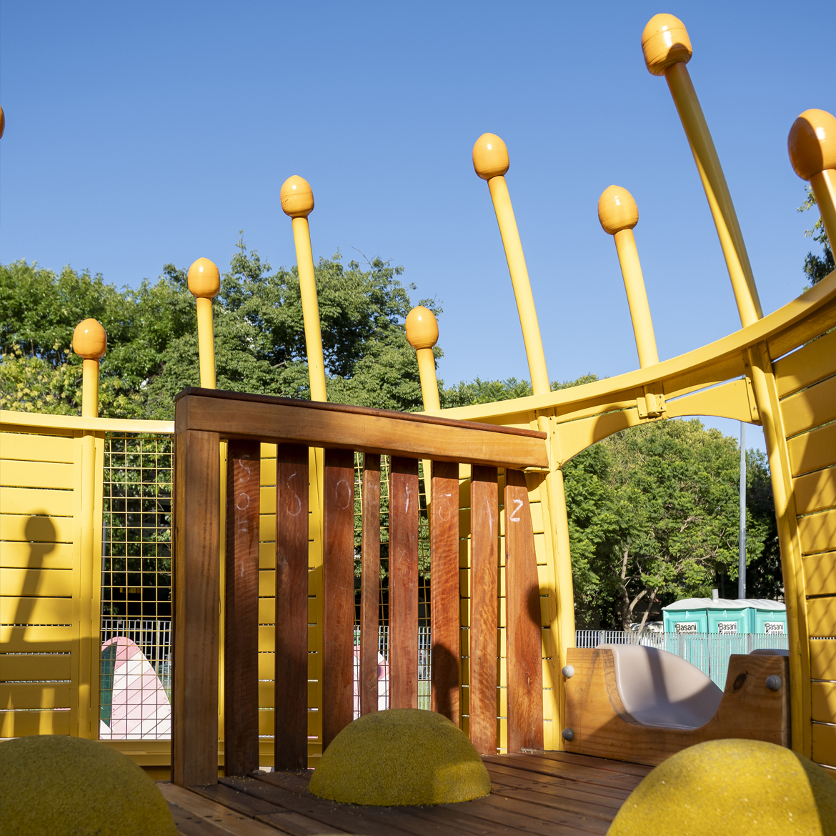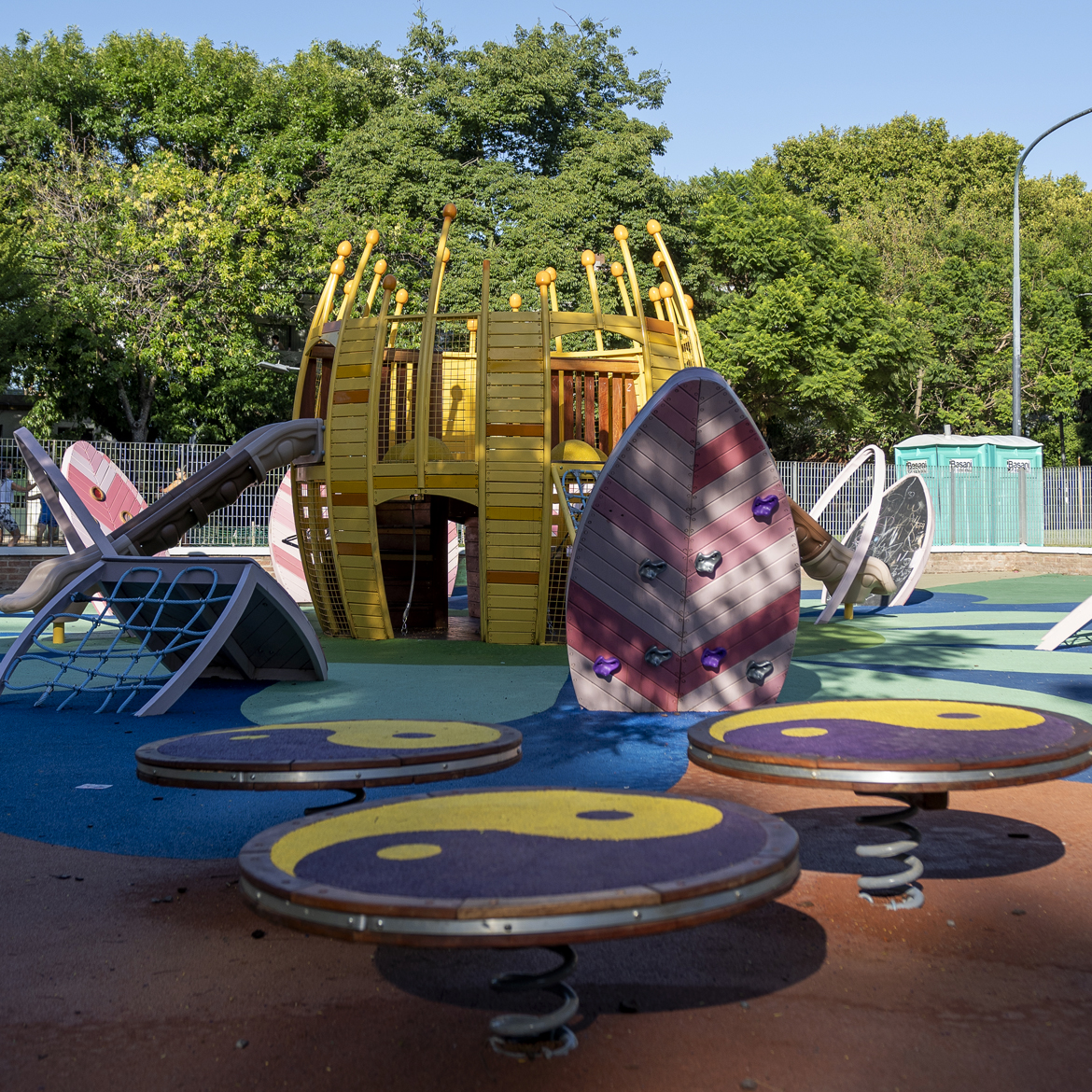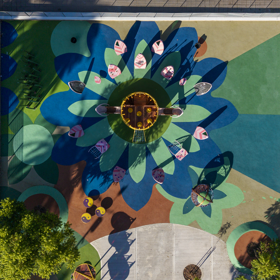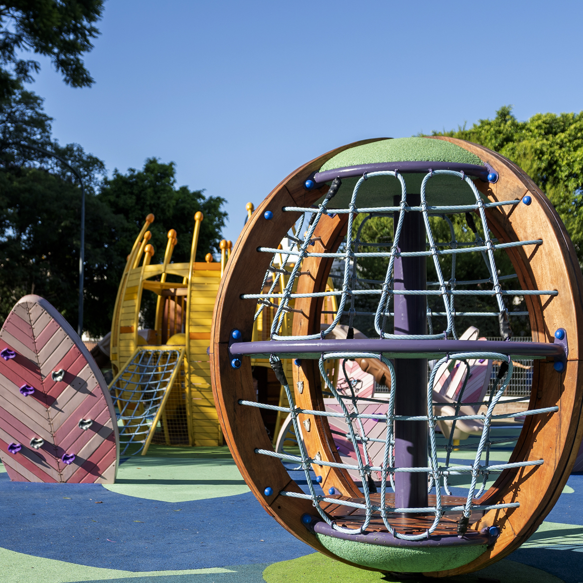 Este espacio único invita a la exploración, con un mangrullo excepcional y un laberinto sensorial entre los pétalos de la flor. Todo está pensado en un ambiente inclusivo y sustentable. Además, para fomentar el bienestar de todos, se ha creado un rincón de calma especialmente diseñado para niños del espectro autista. Lo mejor de todo es que la plaza es accesible para todos, incluyendo personas que usan silla de ruedas o andador.