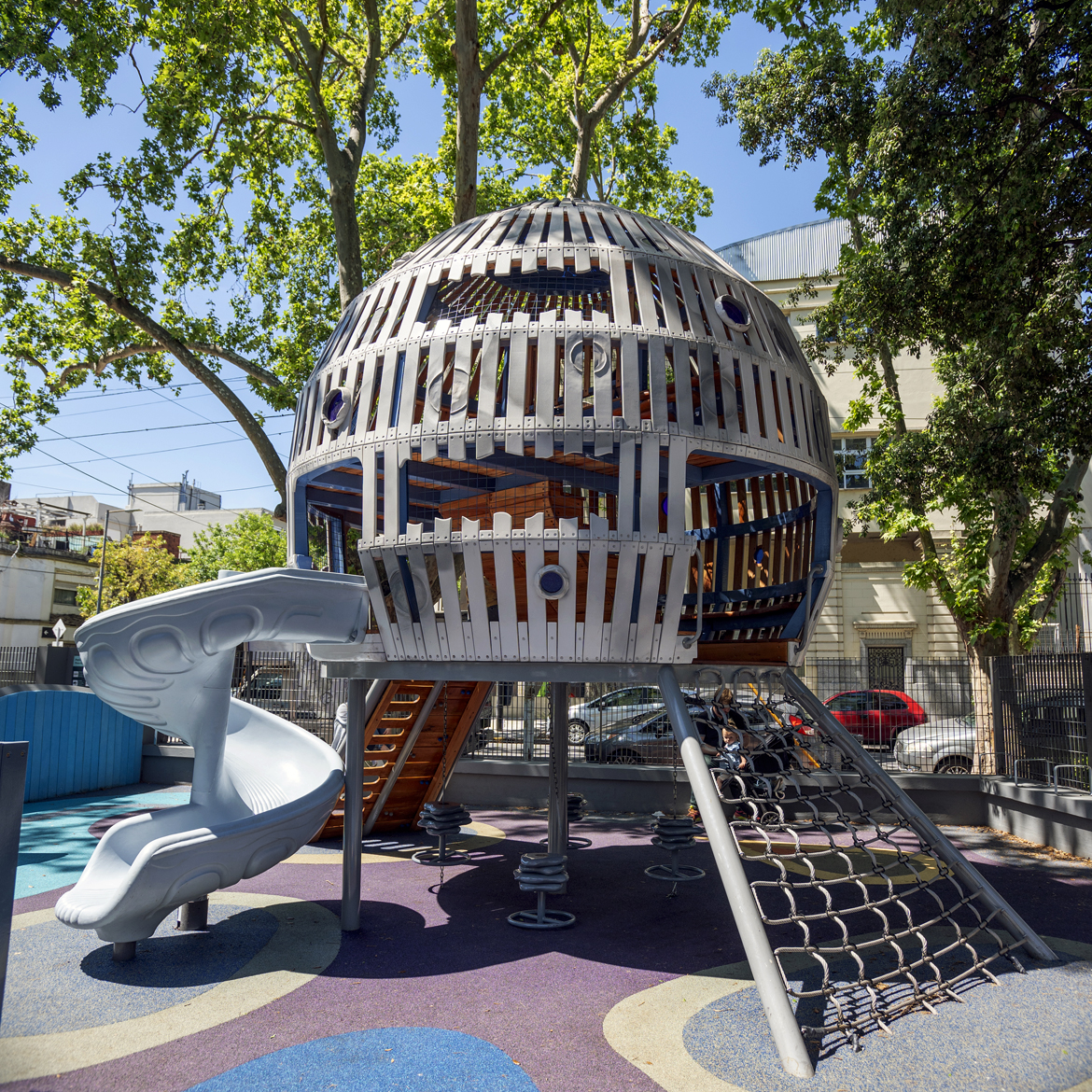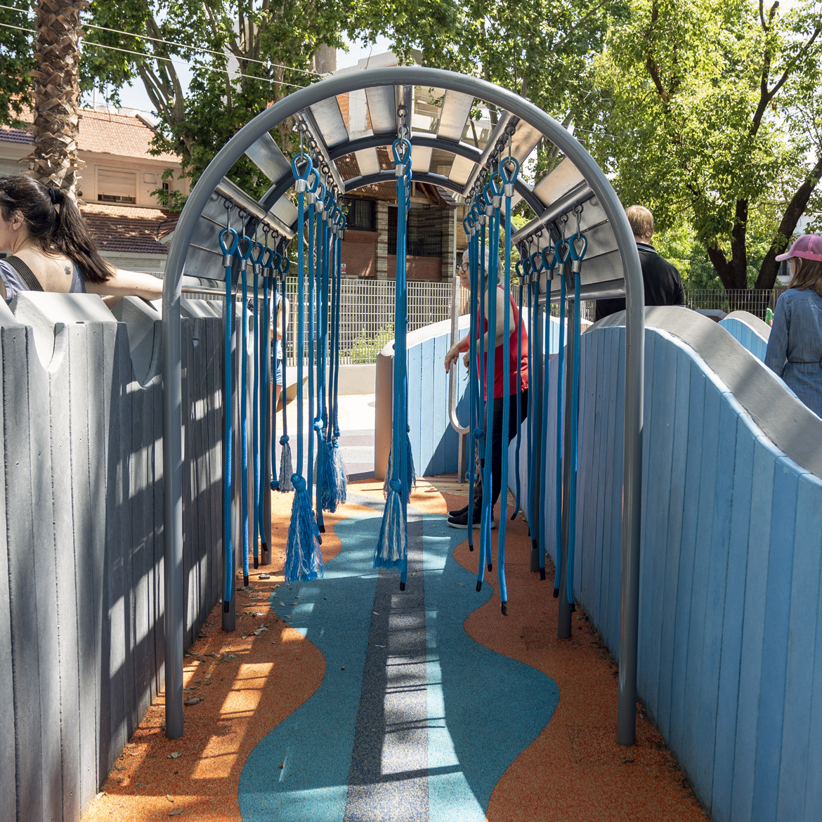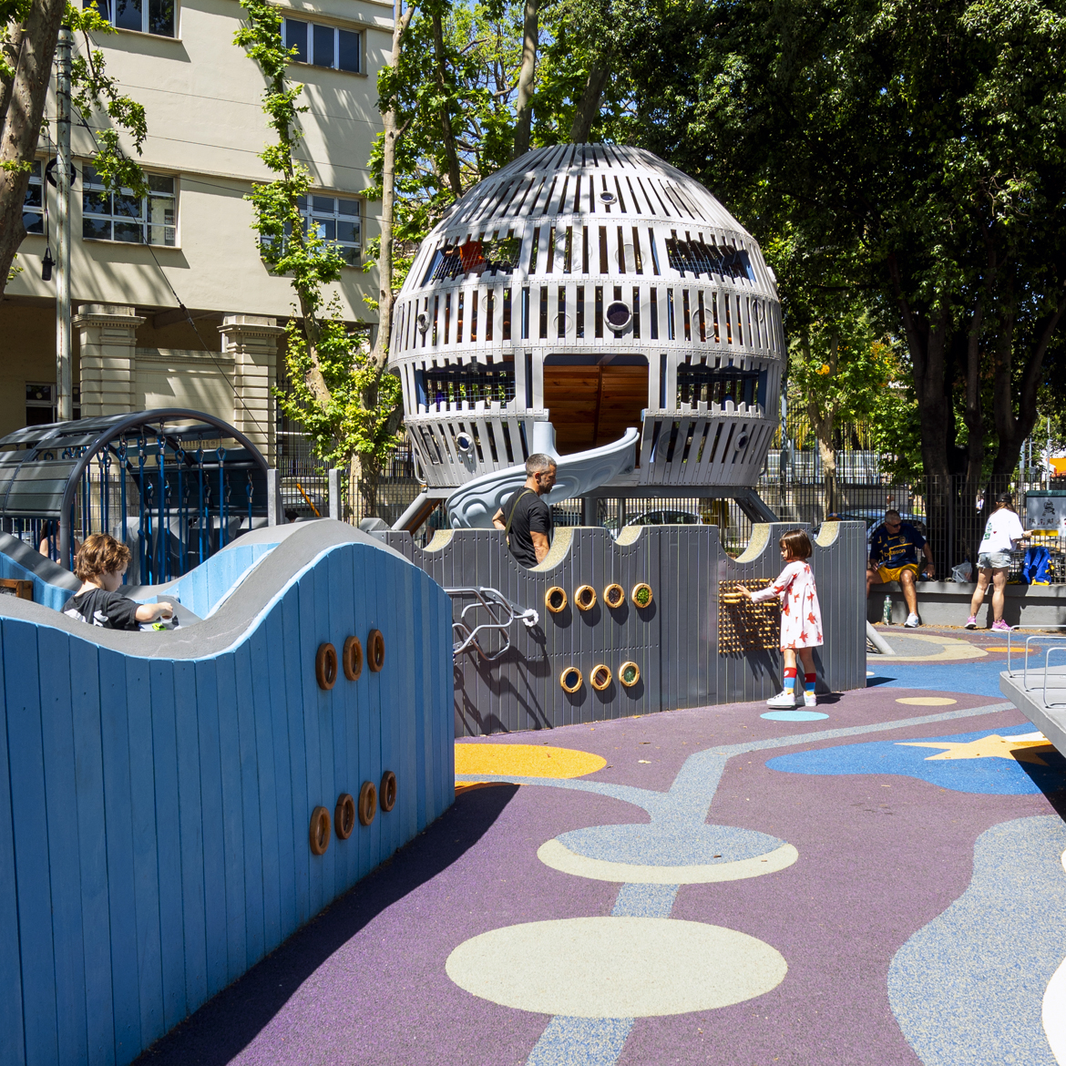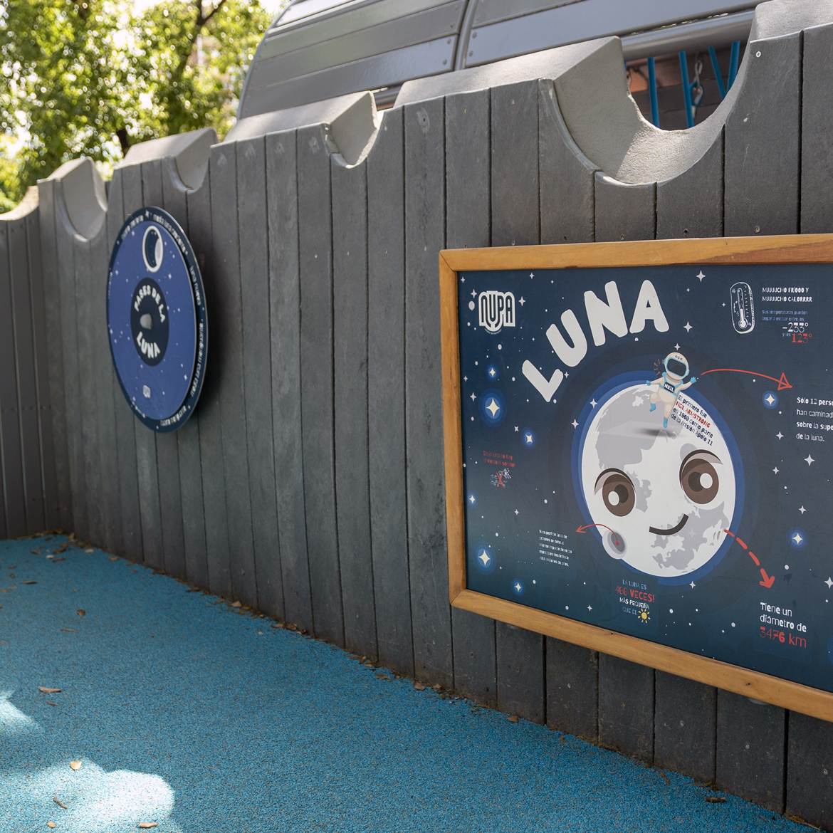 Con un diseño inclusivo y accesible, la plaza ofrece una propuesta lúdica pensada para que todos los niños, sin importar sus habilidades, puedan jugar y soñar juntos. Entre las atracciones se encuentran el Mangrullo Luna, un bosque de palos, y paneles interactivos con códigos QR que harán la visita aún más divertida. También hay un pasillo de sogas para treparse, rocas lunares de caucho para explorar y plataformas móviles que desafían el equilibrio.