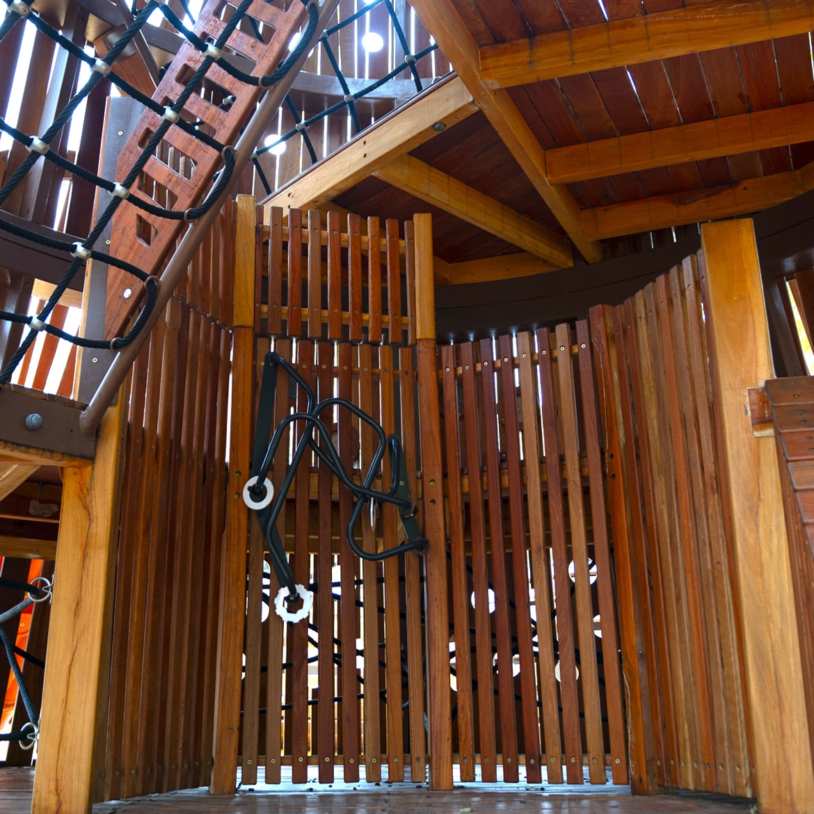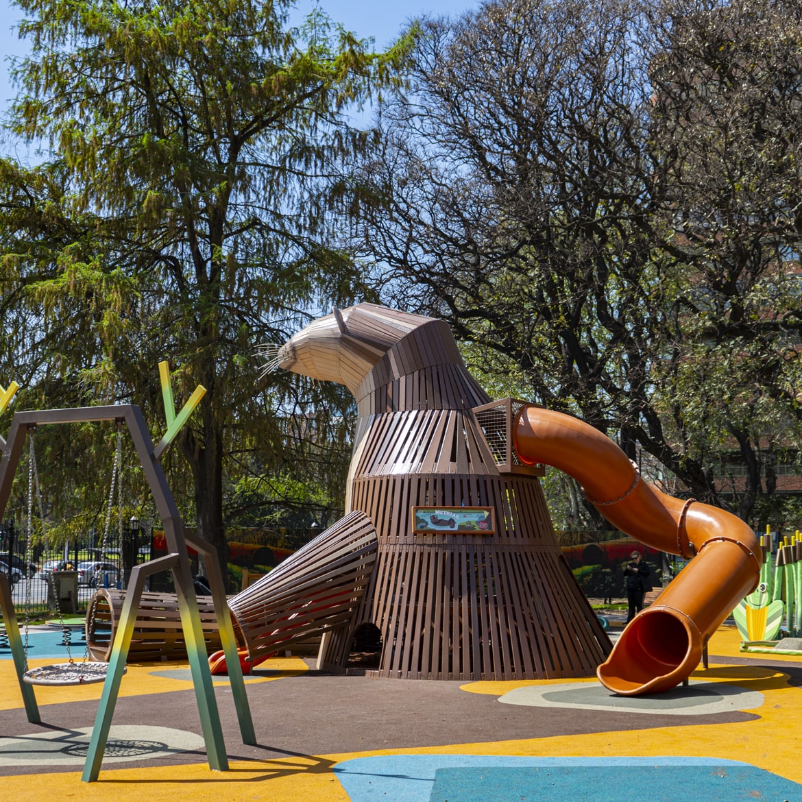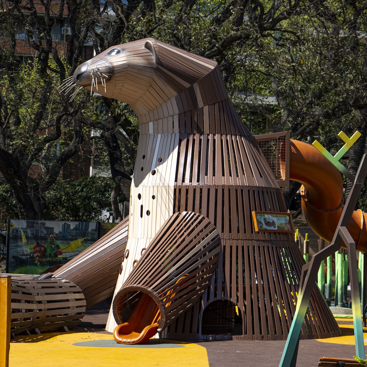 Con muchos toboganes, tomas de escalada y sogas para treparse y rodeada de un hermoso entorno natural nuestra amiguita Nutria está lista para convertirse en el lugar de encuentro favorito de todos los peques!