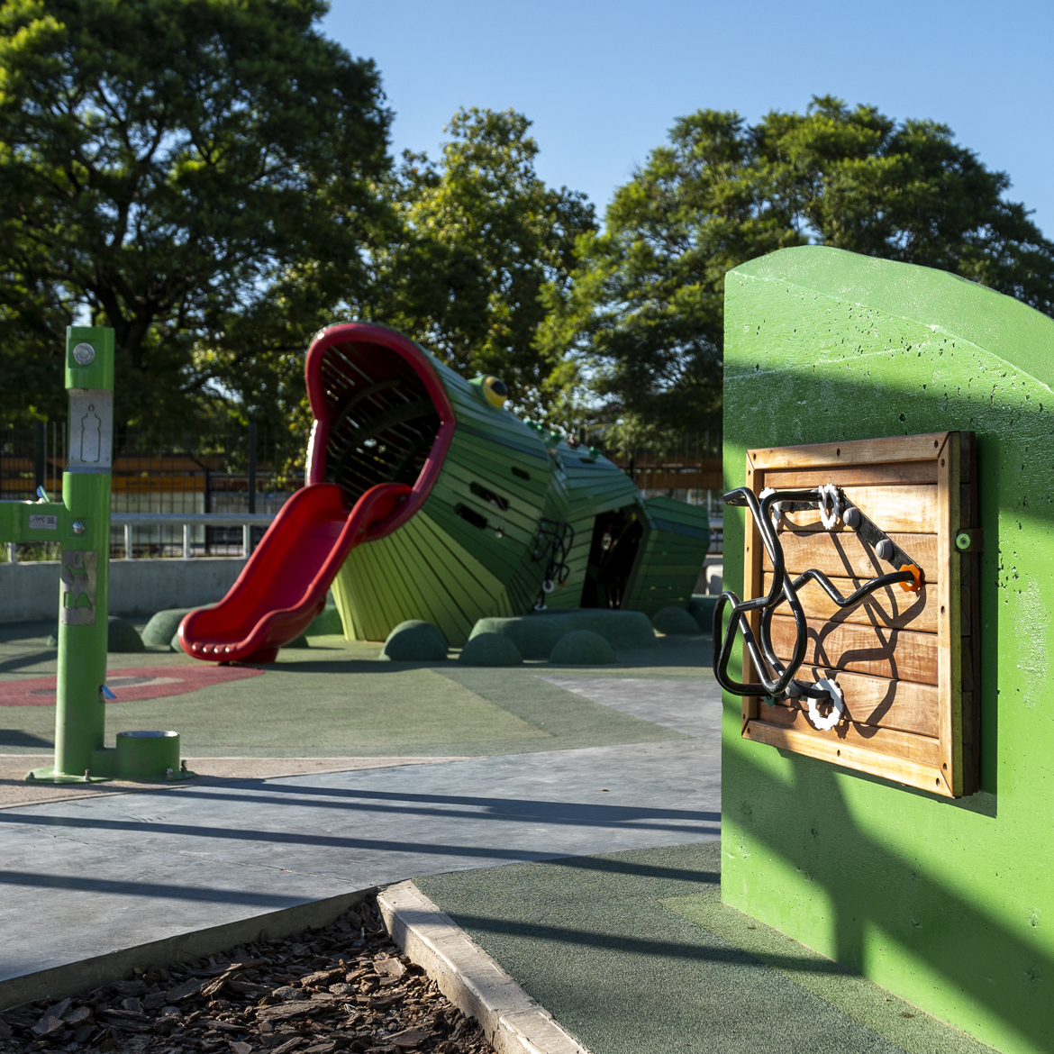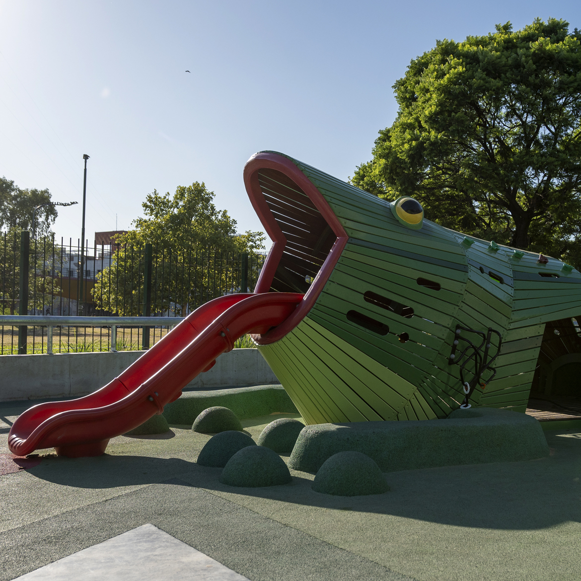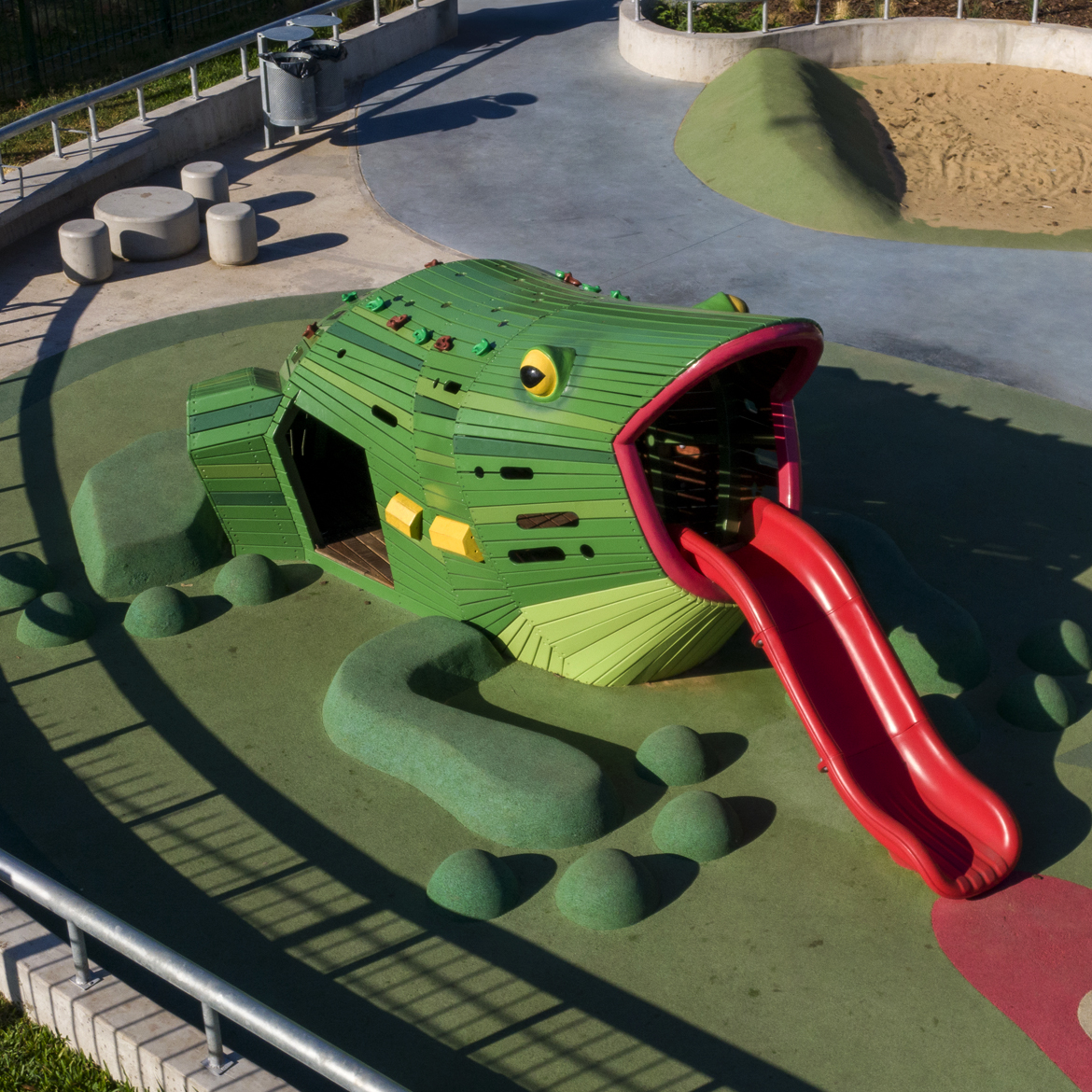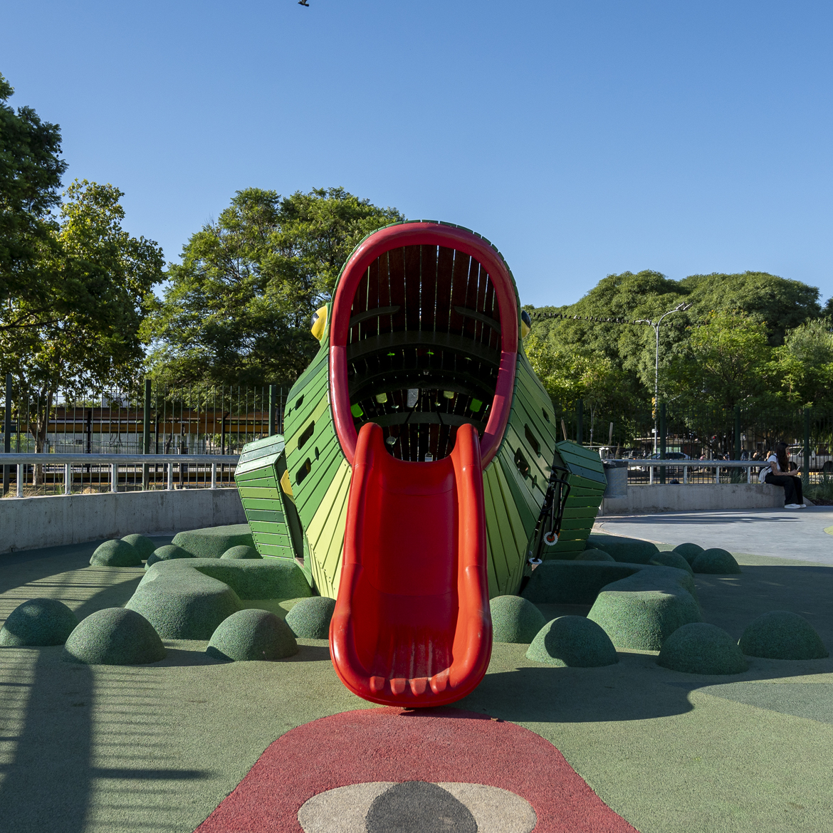 Con su boca abierta y esos enormes ojos, esta rana invita a todos los chicos a treparse y divertirse. Es el lugar ideal para escalar, deslizarse y saltar de un lado a otro, como auténticas ranitas! Un espacio lleno de diversión y aventura para disfrutar sin parar.