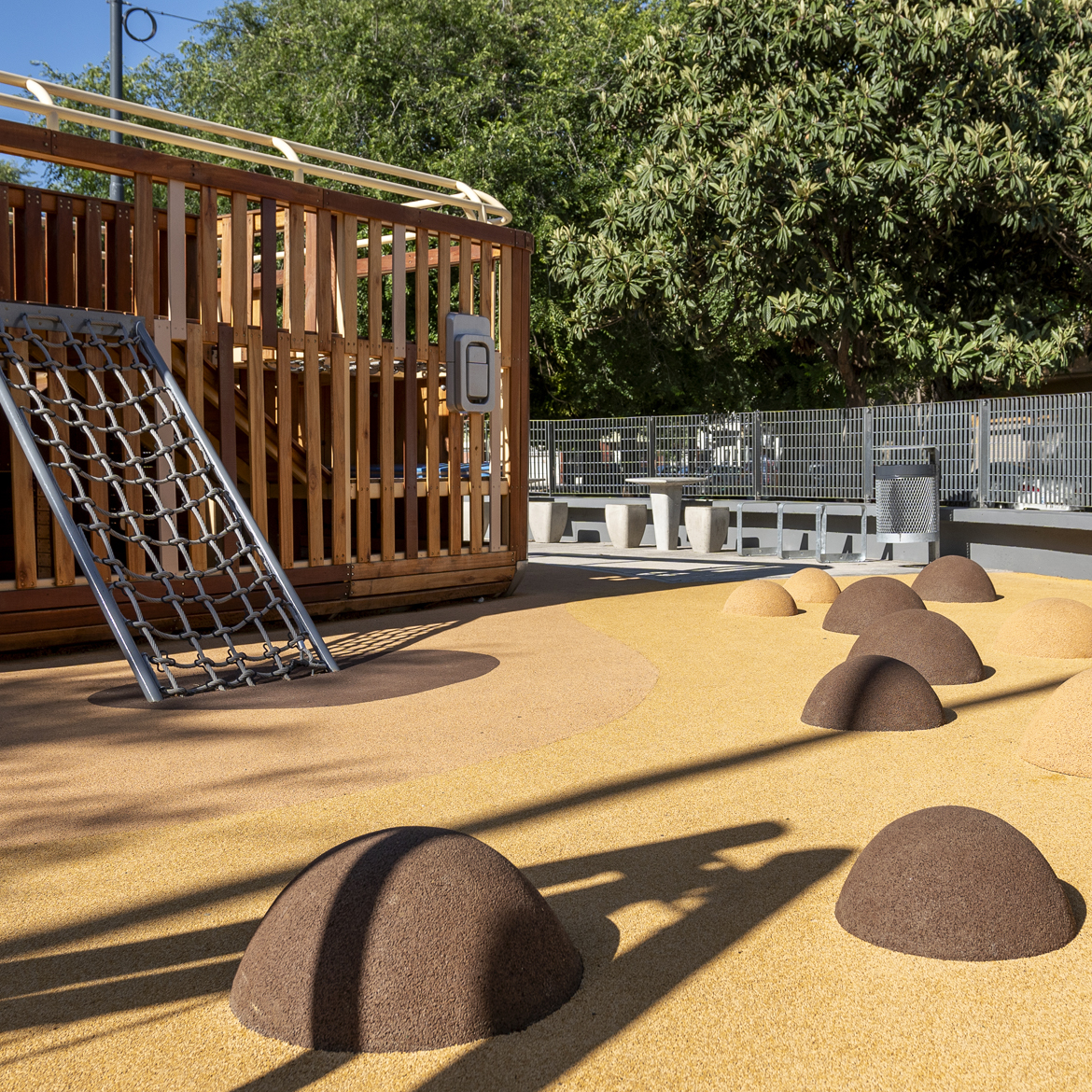Los más pequeños pueden disfrutar de toboganes, tomas de escalada, puentes dinámicos, texturas y un circuito motriz que fomenta su creatividad. Además, con un panel informativo, aprenden sobre la historia del viaje del inmigrante, mientras exploran mangrullos con forma de valijas, un auto antiguo y un pórtico de hamacas que completan la atmósfera. Un lugar perfecto para chicos de todas las edades, donde la diversión y la imaginación no tienen límites. Diversión asegurada para todos!